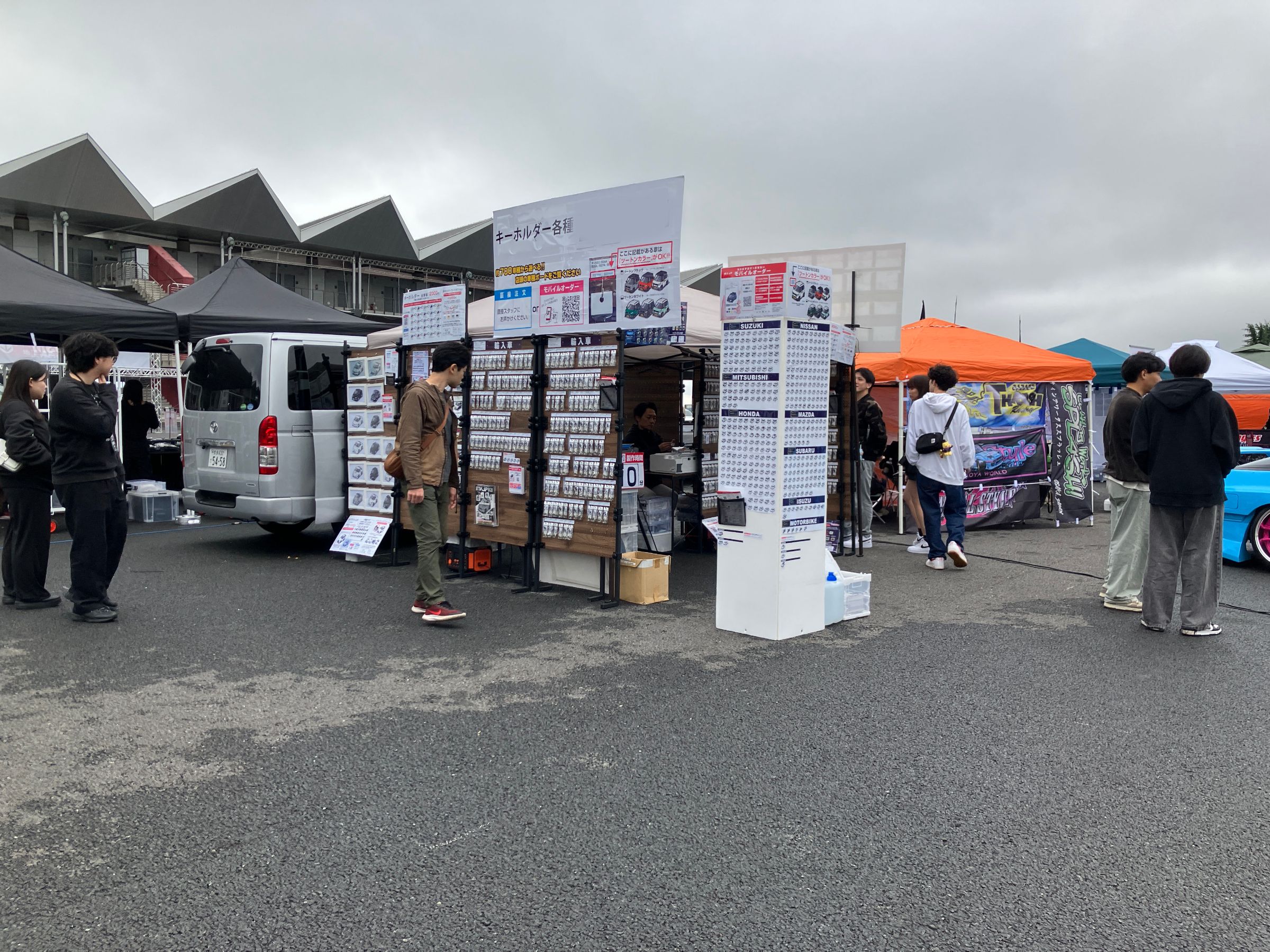 MKJPでは、はじめてとなるモーターランド三河での出店でした。MKJPブースではキーホルダーをメインに販売させていただきました。イベント自体も80分耐久レースや、じゃんけん大会、飲食ブースなど大いに盛り上がりました。また車を愛するたくさんの方と巡り合いキーホルダーを通じて、イベント自体を大いに楽しむことができました。