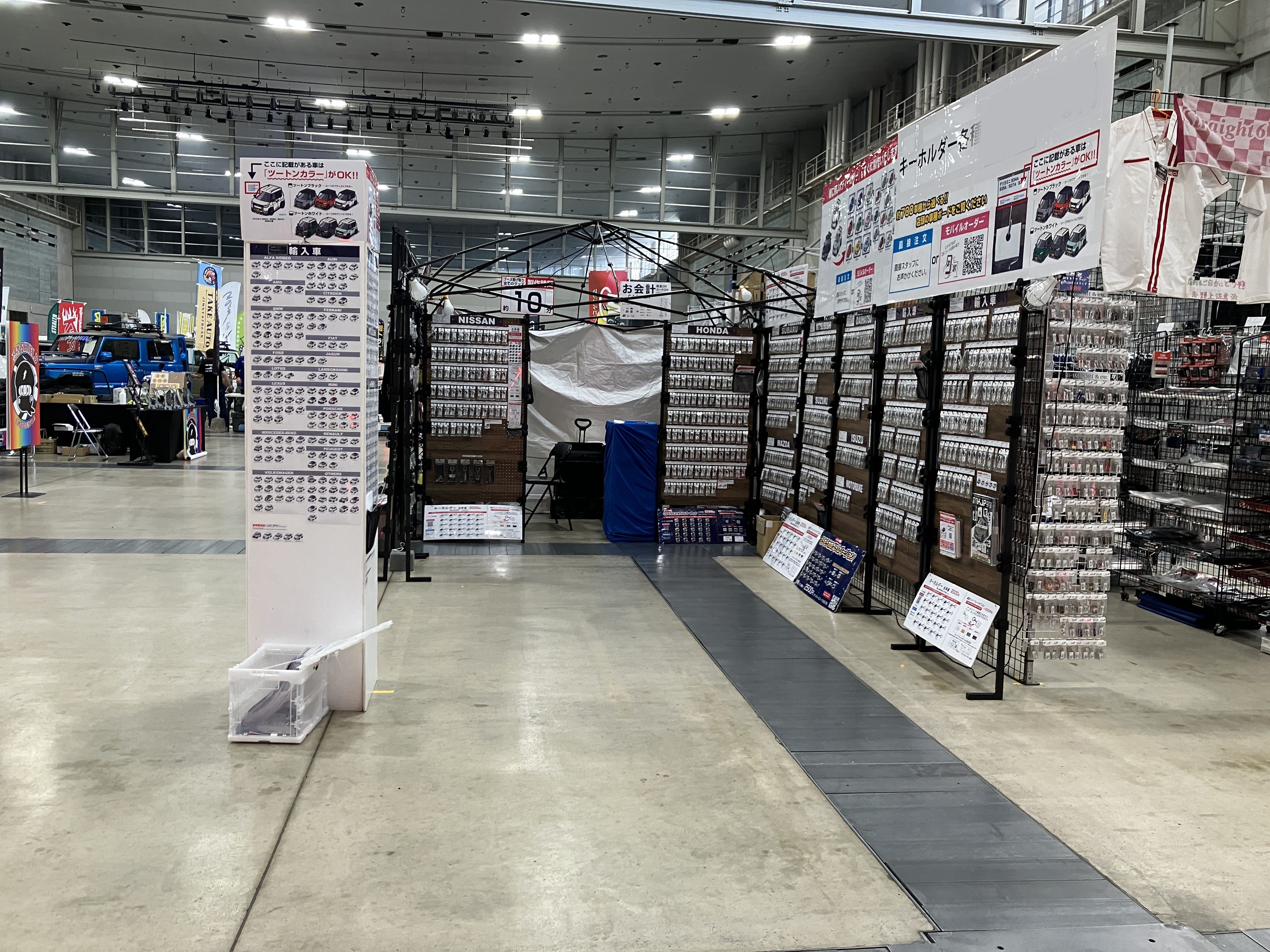 すでに当店のグッズをご購入のお客様も初めてのお客様の多数おられ、ナンバー入りキーホルダーの製作陣は大忙しでした。また主催者様にも大変評価をいただきとても感謝の3日間でした。