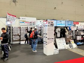 MKJPブースでは、700車種におよぶ車イラストで、キーホルダーやステッカー・エンブレムなどの雑貨やTシャツ・パーカーなどのアパレル、またスマホケースやエコバッグなどのグッズを販売いたしました。イベントにはタレントの竹内力さんも登場されて盛り上がりました。