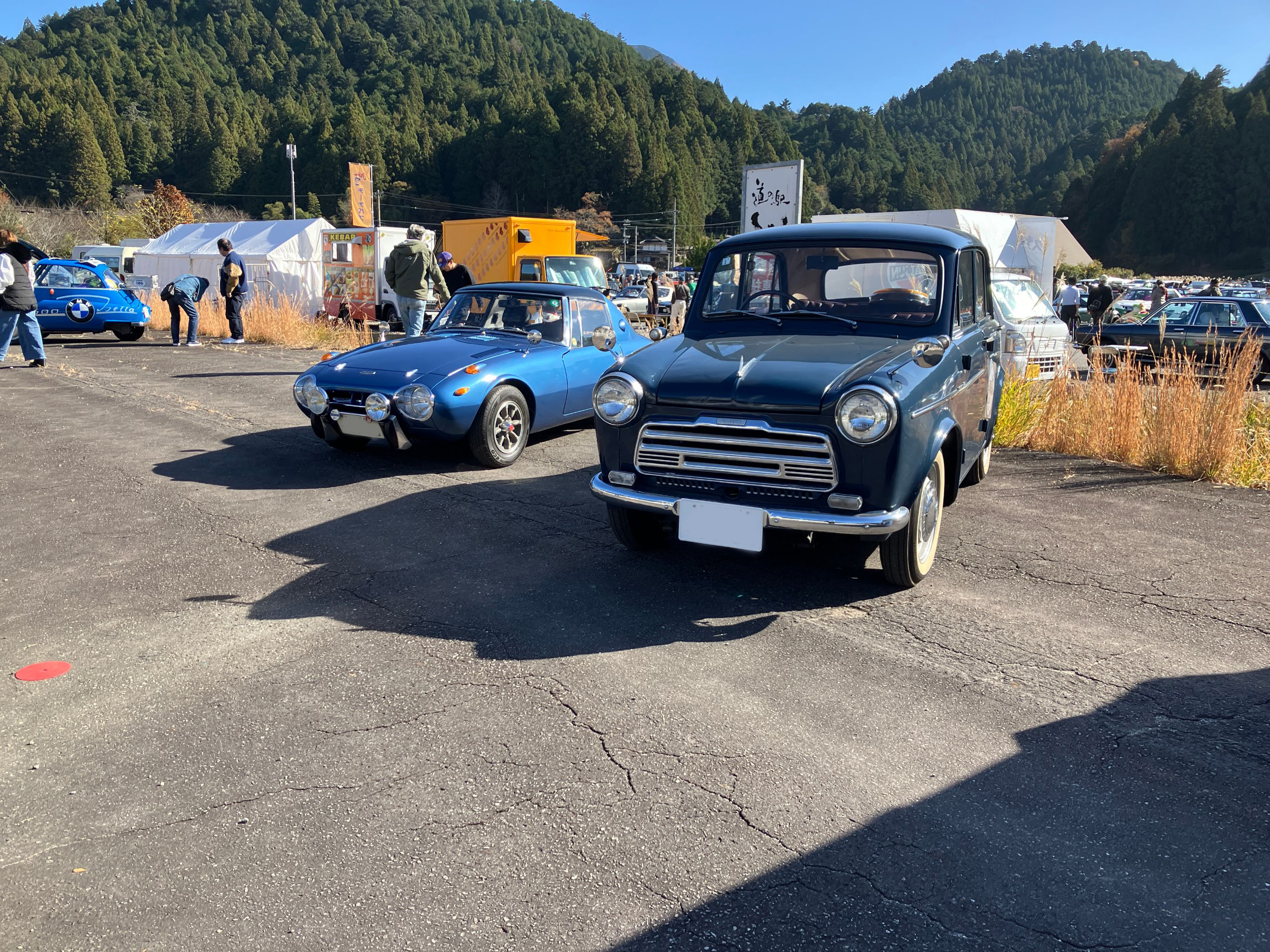 メイン会場の道の駅設楽では、多くの価値あるクラシックカーが展示されたくさんの人でにぎわいました。