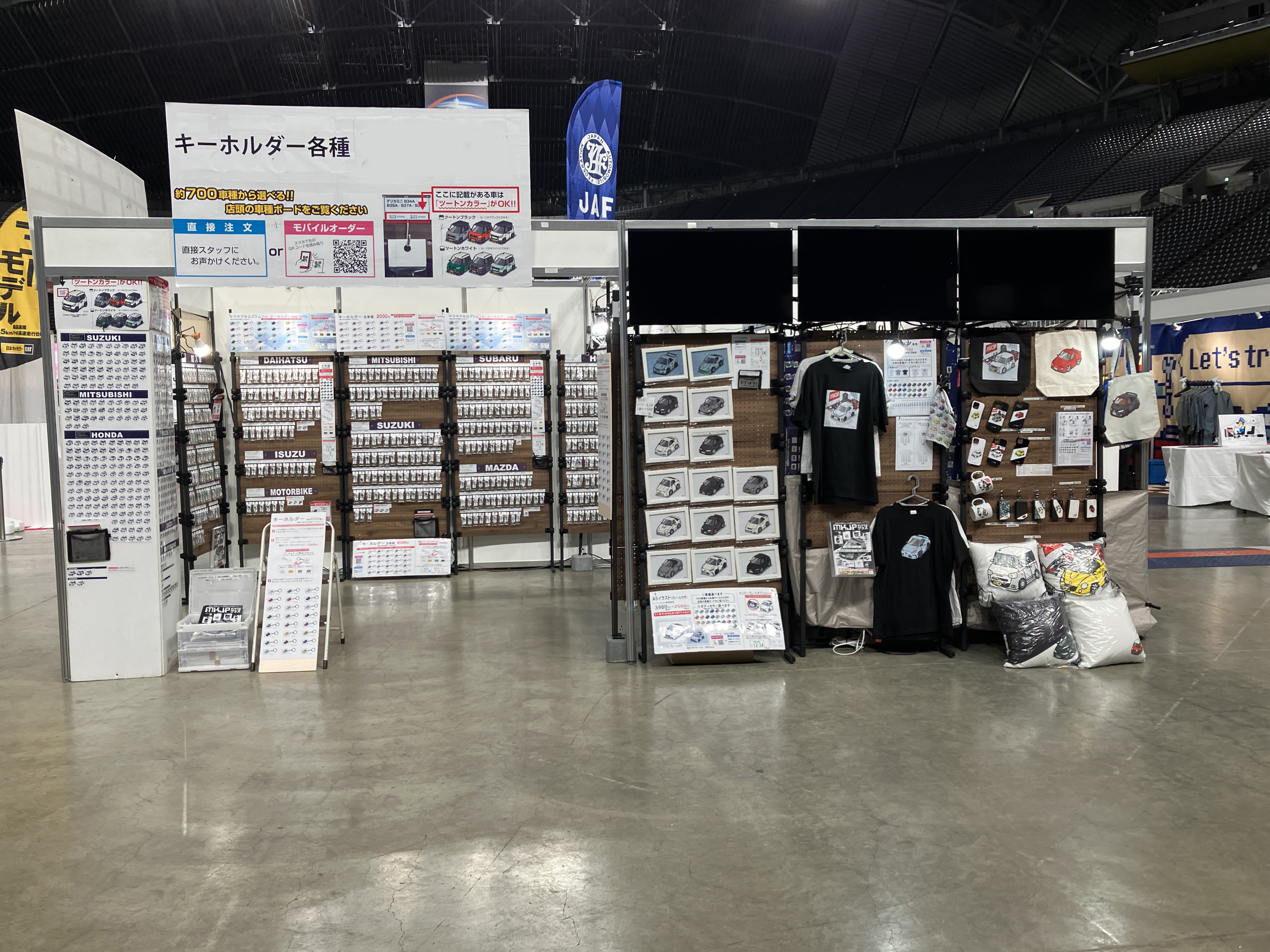 物販も様々なブースがありましたが、MKJPは車に関連したブースということで少し異色のブースでした!