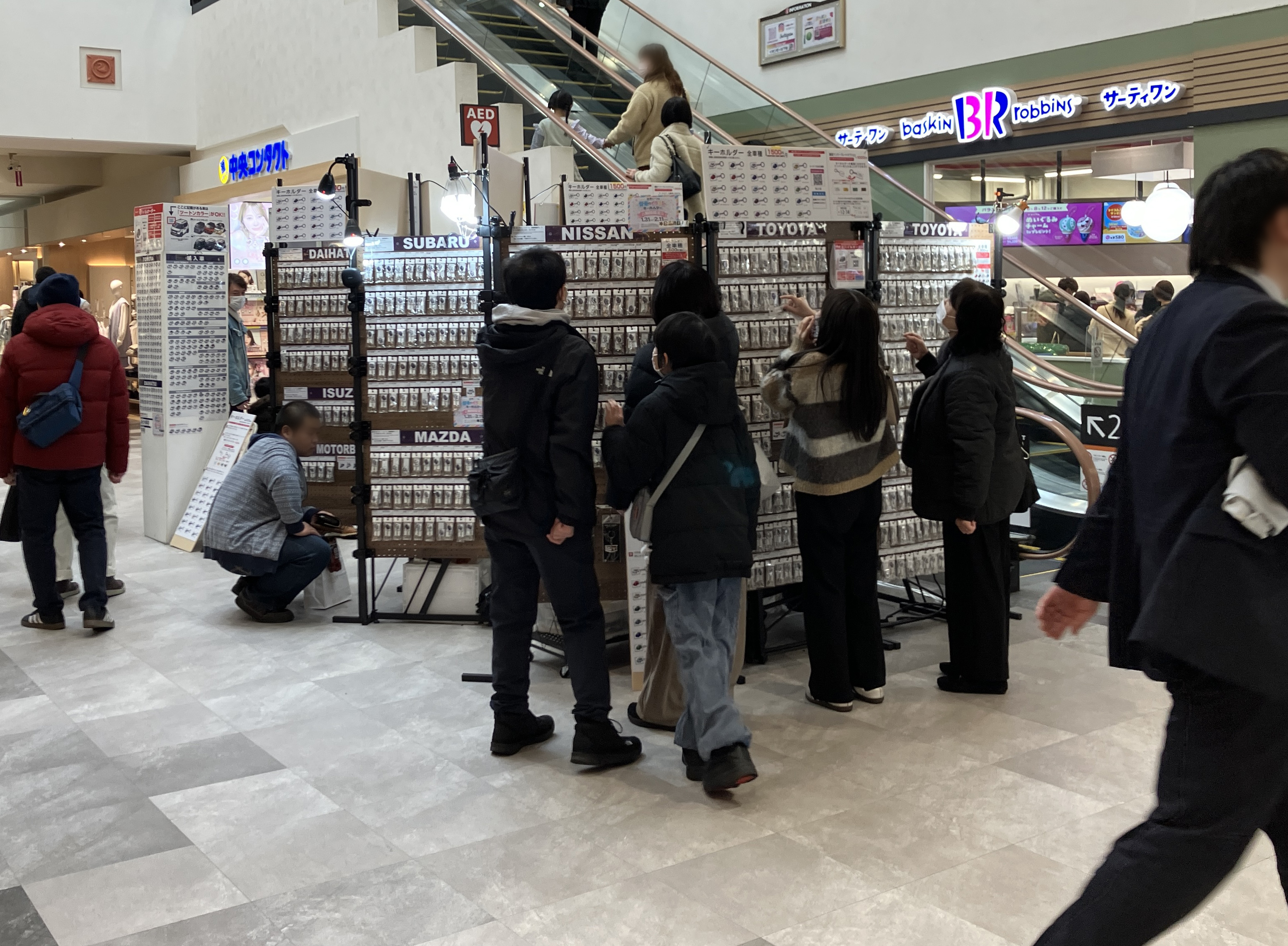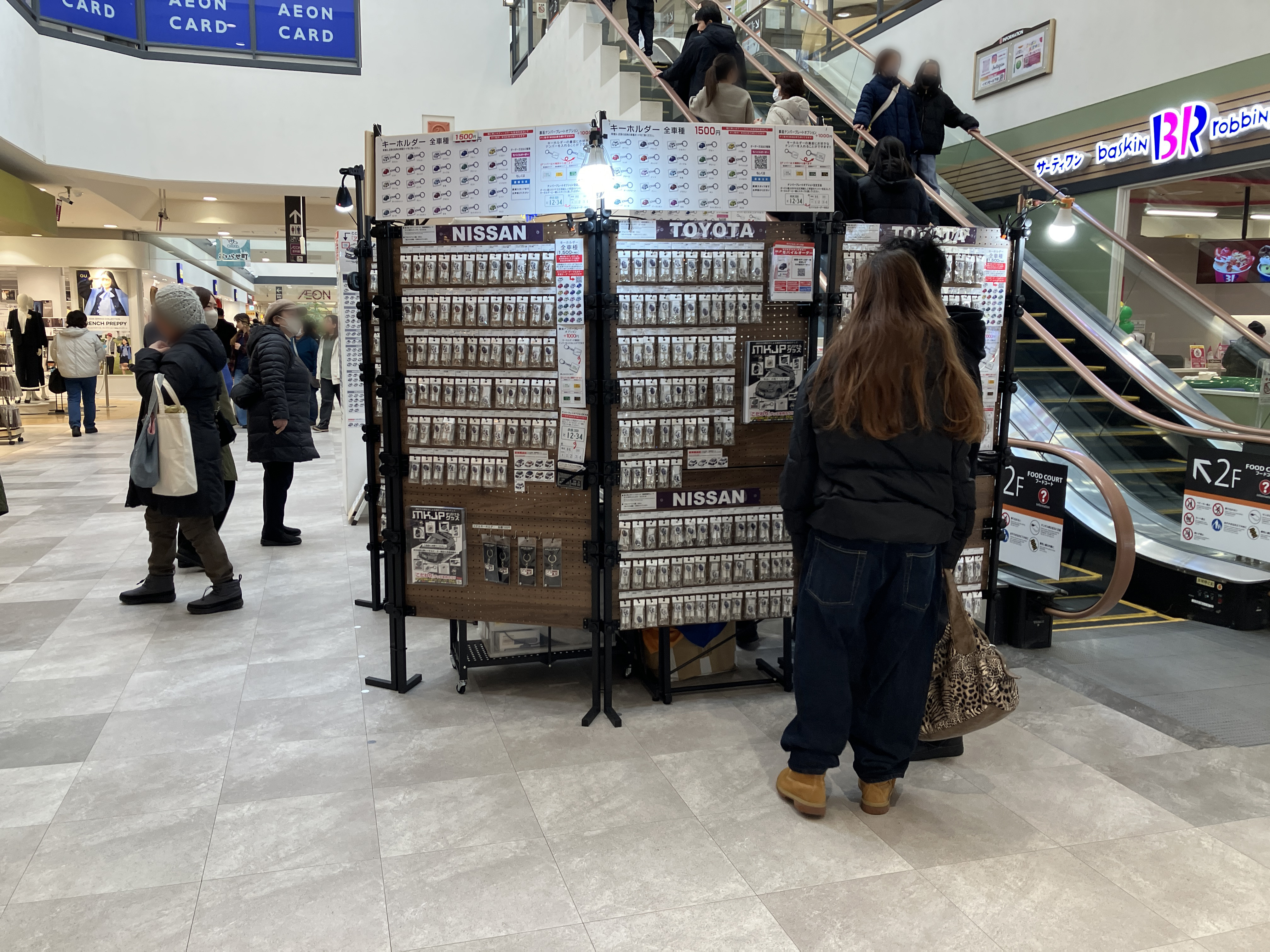 カップルや家族連れのかた等、多くのお客様にキーホルダーを手に取っていただけました。